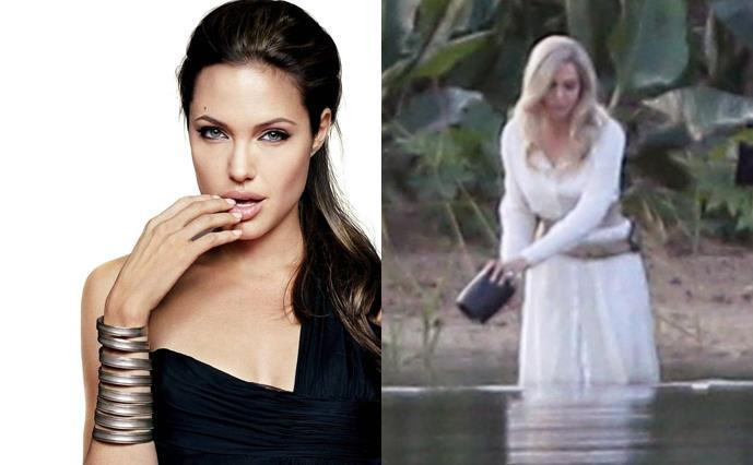파파라치가 찍은 사진 속 안젤리나 졸리는 트랜치 코트를 입었으며, 한 손에는 와인을.
